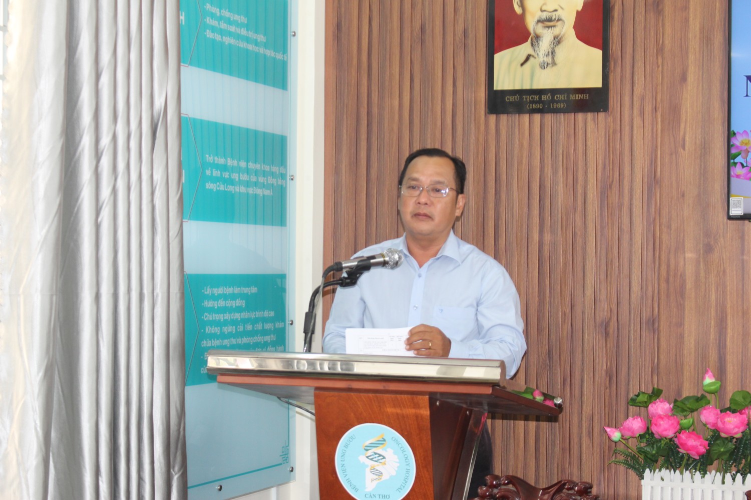 Chiều ngày 16/01/2026, Bệnh viện Ung bướu thành phố Cần Thơ đã long trọng tổ chức Hội nghị Tổng kết hoạt động năm 2025 và phương hướng, nhiệm vụ năm 2026. Hội nghị vinh dự đón tiếp Ông Nguyễn Thành Lập – Trưởng phòng Nghiệp vụ Y Sở Y tế TP. Cần Thơ và Ông Đoàn Duy Dậm – Trưởng phòng Tổ chức cán bộ Sở Y tế TP. Cần Thơ. TSBS Võ Văn Kha – Giám đốc Bệnh viện chủ trì hội nghị.