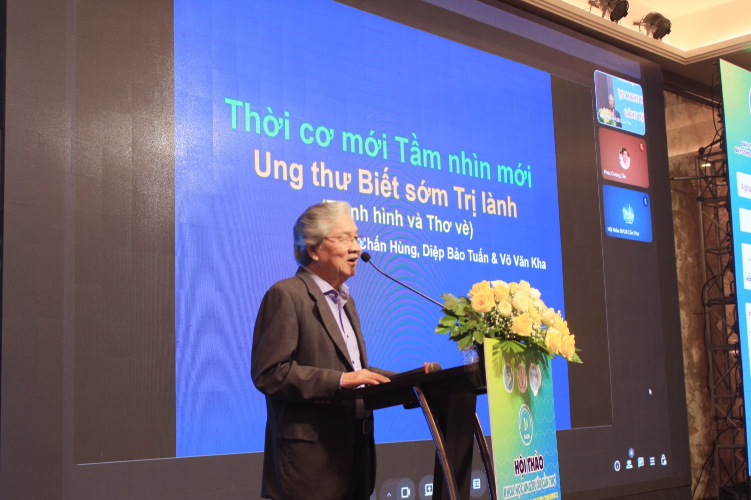 Hội thảo khoa học Ung bướu Cần Thơ lần thứ 14 năm 2025 diễn ra trong 2 ngày 25 - 26/9/2025, tập trung vào những chủ đề mang tính thời sự và đầy thách thức của ngành ung thư học. Hội thảo có gần 20 phiên khoa học với hơn 130 báo cáo chuyên sâu, bao gồm 3 phiên đào tạo liên tục và 12 phiên chuyên đề, trải rộng các lĩnh vực từ phổi, vú, gan mật, sinh học phân tử, miễn dịch, đến điều trị đa mô thức, chăm sóc giảm nhẹ và quản lý y tế. ![]() TSBS. Võ Văn Kha – Giám đốc Bệnh viện Ung bướu TP. Cần Thơ phát biểu Niềm hạnh phúc và tự hào lớn lao đối với Ban Tổ chức là Hội thảo năm nay có sự tham gia của gần 200 chuyên gia đầu ngành trong và ngoài nước tham gia chủ tọa, báo cáo, cùng gần 800 đồng nghiệp trên khắp cả nước về dự. Sự hiện diện đông đảo này đã khẳng định uy tín, tầm vóc cũng như sức lan tỏa của hội thảo trong cộng đồng y khoa. Đặc biệt, tại Phiên toàn thể hôm nay, bên cạnh các chuyên gia trong nước còn có sự tham gia báo cáo của các chuyên gia quốc tế đến từ Pháp và Hàn Quốc… đã mang đến những góc nhìn đa chiều, những tiến bộ mới nhất và kinh nghiệm quý báu trong điều trị ung thư. ![]() GS.BS. Nguyễn Chấn Hùng, Chủ tịch Danh dự Hội Ung thư Việt Nam phát biểu tại hội nghị Phiên toàn thể khép lại trong không khí trang trọng và ấm áp, để lại nhiều dấu ấn tốt đẹp về tinh thần chia sẻ và phát triển. Hội thảo Ung bướu Cần Thơ lần thứ 14 năm 2025 một lần nữa khẳng định vị thế là cầu nối tri thức, là nơi hội tụ trí tuệ và tâm huyết của đội ngũ y khoa, hướng đến mục tiêu: “Đồng hành giảm nhẹ ung thư”./. Một số hình ảnh tại Phiên toàn thể