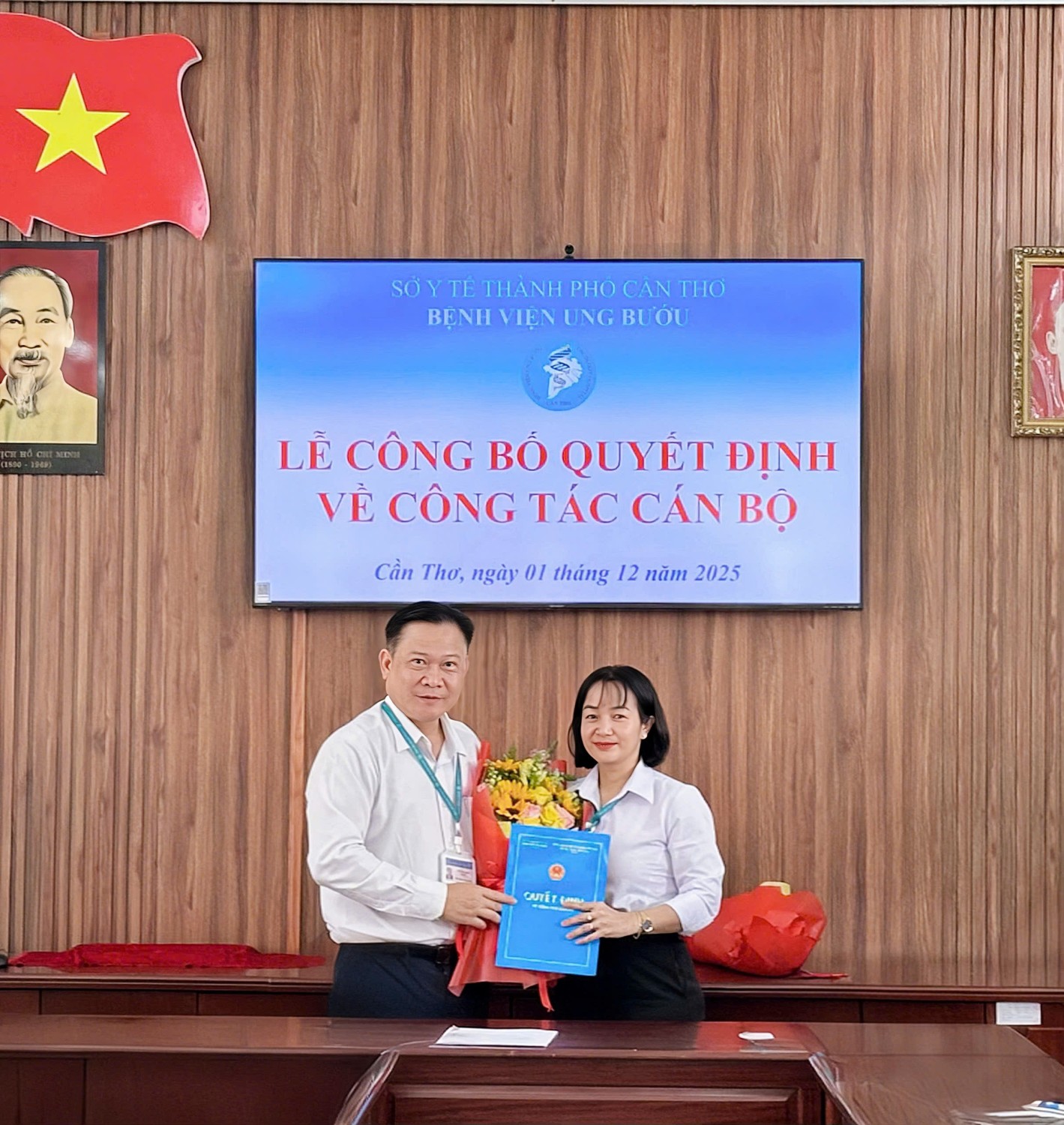 Chiều ngày 01 tháng 12 năm 2025, Bệnh viện Ung bướu thành phố Cần Thơ đã tổ chức Lễ công bố trao Quyết định bổ nhiệm Kế toán trưởng Bệnh viện trong Bệnh viện. Tham gia buổi Lễ trao Quyết định bổ nhiệm có TSBS. Võ Văn Kha - Bí thư Đảng ủy - Giám đốc Bệnh viện, BSCKII. Huỳnh Thảo Luật - Phó Giám đốc - Chủ tịch Công đoàn Bệnh viện, BSCKII. Lê Tiến Mãnh - Phó Giám đốc Bệnh viện, TS.BS Hồ Long Hiển - Phó Giám đốc Bệnh viện cùng các trưởng, phó khoa, phòng trong Bệnh viện.