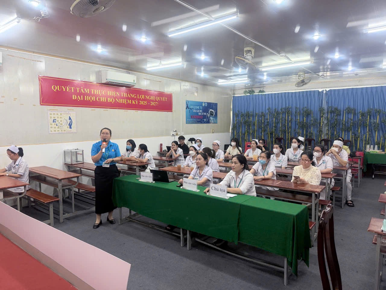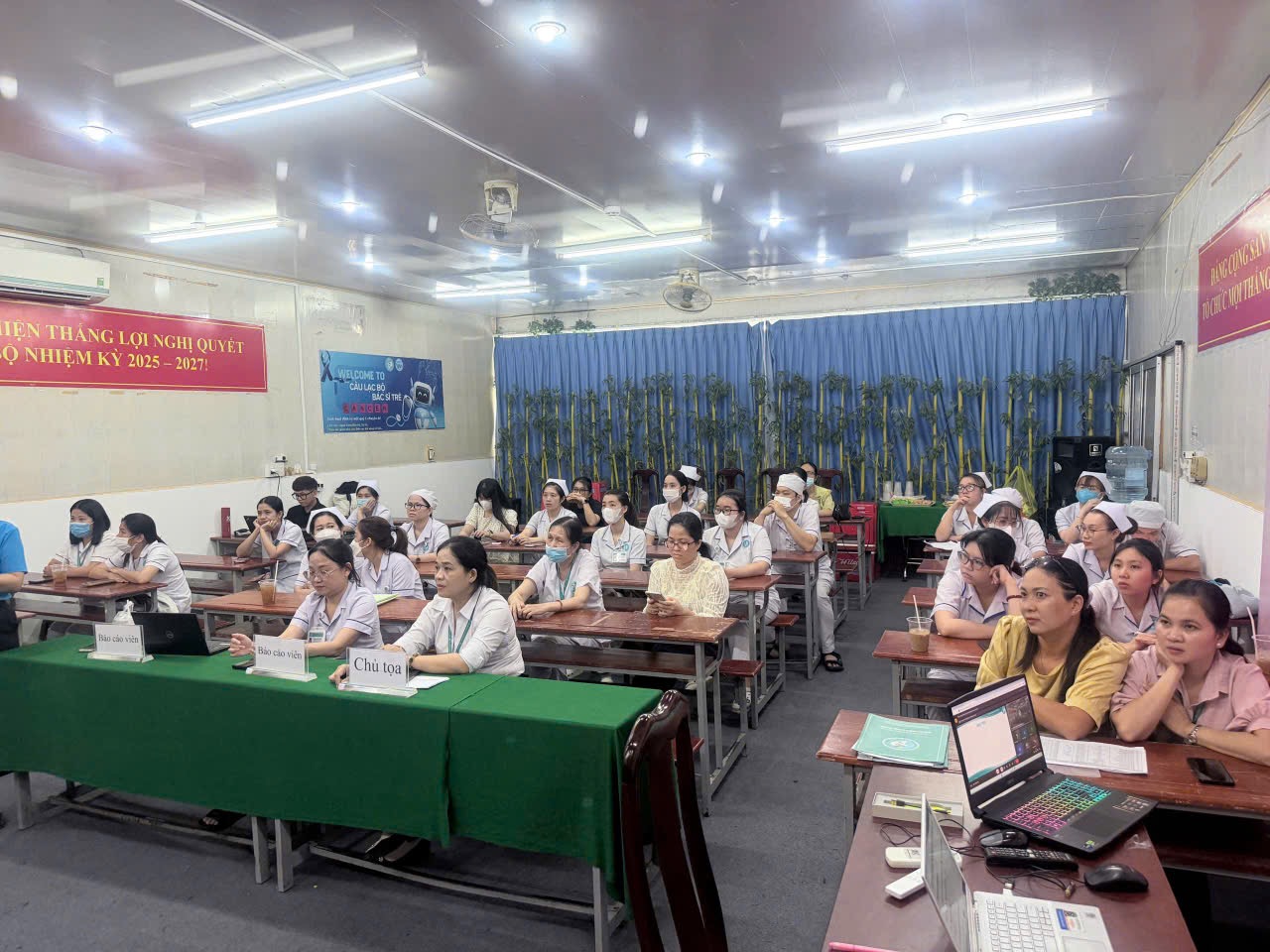 Tại buổi sinh hoạt, các Điều dưỡng được nghe báo cáo viên chia sẻ kiến thức