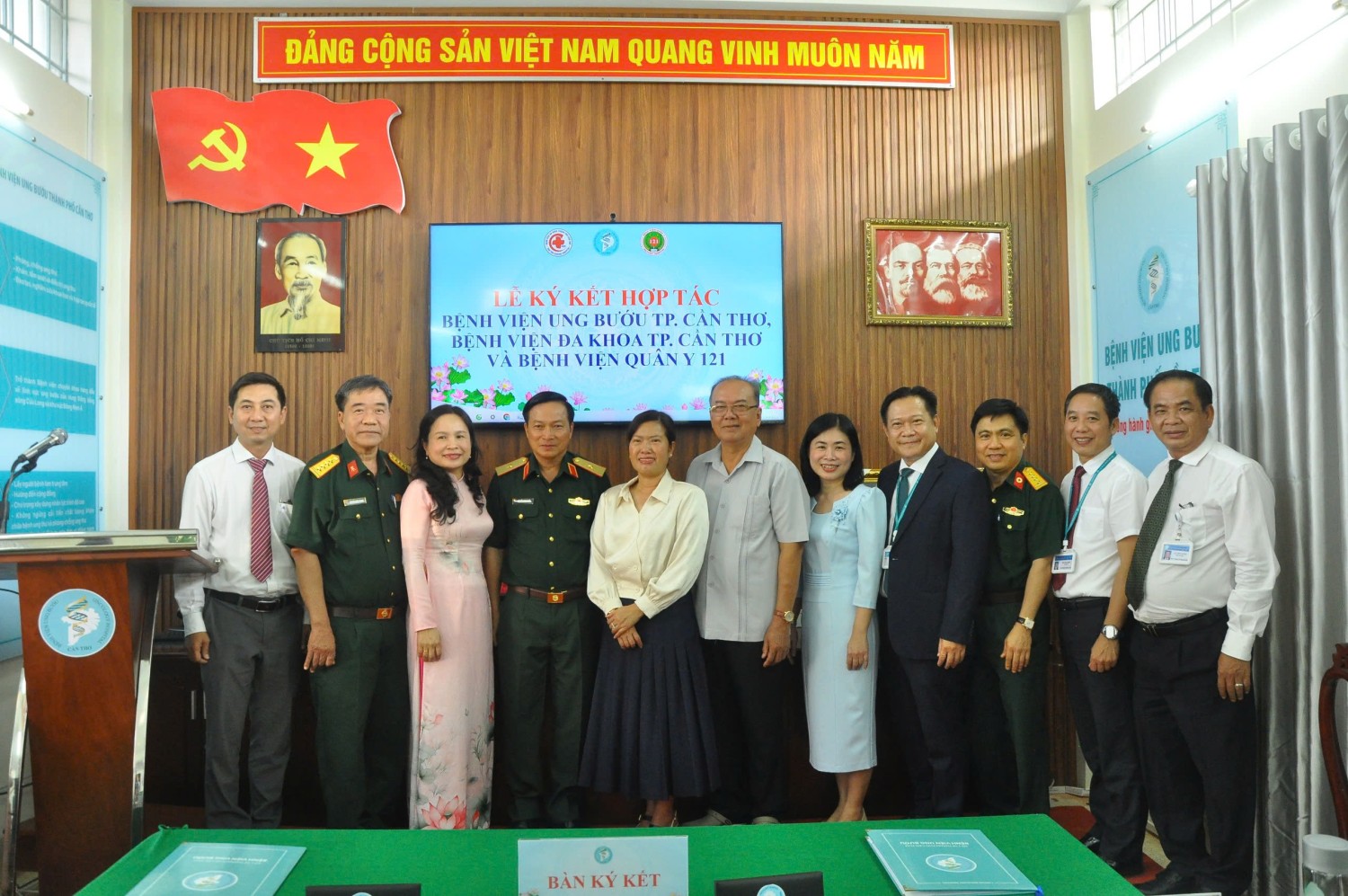 Buổi lễ vinh dự đón tiếp Ông Lê Hùng Dũng – Nguyên Chủ tịch Ủy ban nhân dân TPCT, Bà Nguyễn Thị Ngọc Điệp – Phó Chủ tịch Ủy ban nhân dân TPCT, Bà Nguyễn Ngọc Việt Nga – Phó Giám đốc Sở Y tế TPCT, Thiếu tướng Nguyễn Minh Triều – Phó Tư lệnh Quân Khu 9. Về phía các đơn vị hợp tác ký kết: TSBS. Võ Văn Kha – Giám đốc Bệnh viện Ung bướu TPCT, Đại tá BSCKII. Trần Mạnh Hùng - Giám đốc Bệnh viện Quân Y 121, BSCKII. Trần Dạ Thảo - Phó Giám đốc Bệnh viện Đa khoa TPCT cùng đại diện là các trưởng, phó khoa phòng của 03 đơn vị.