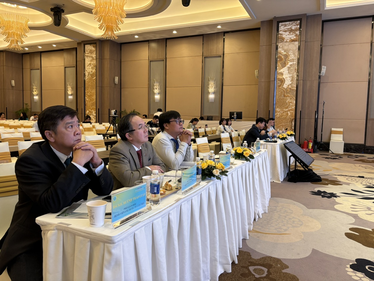 Các vị chủ tọa, khách mời chăm chú theo dõi nội dung của báo cáo viên