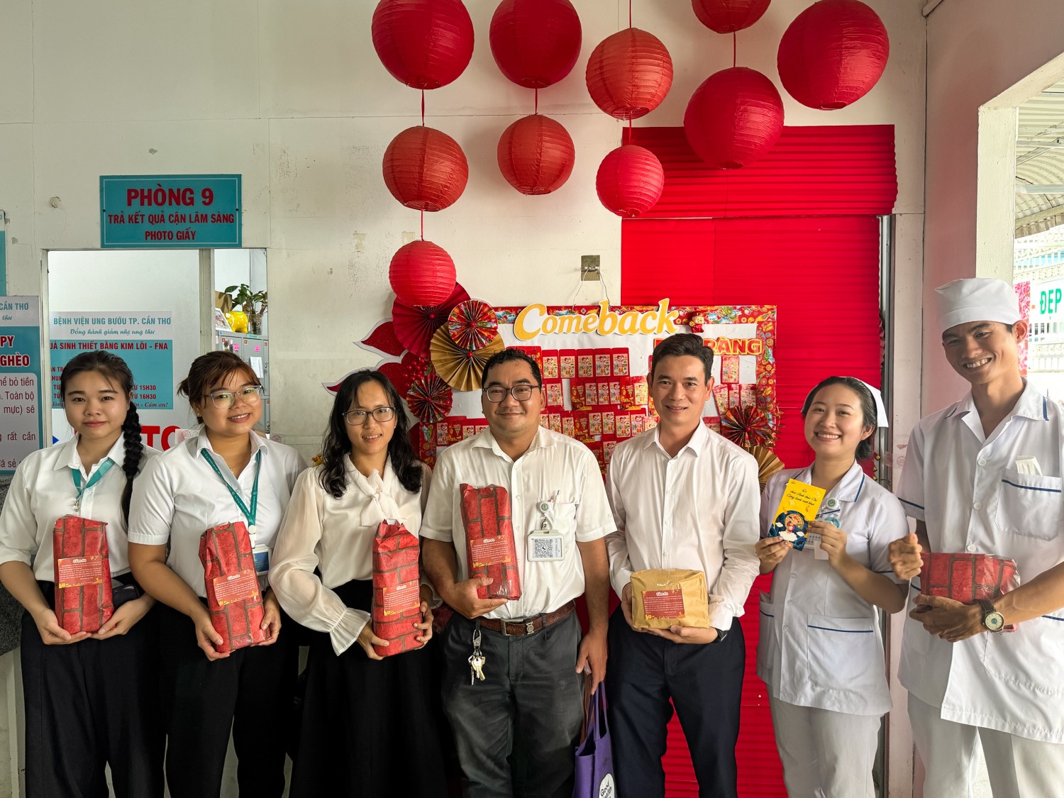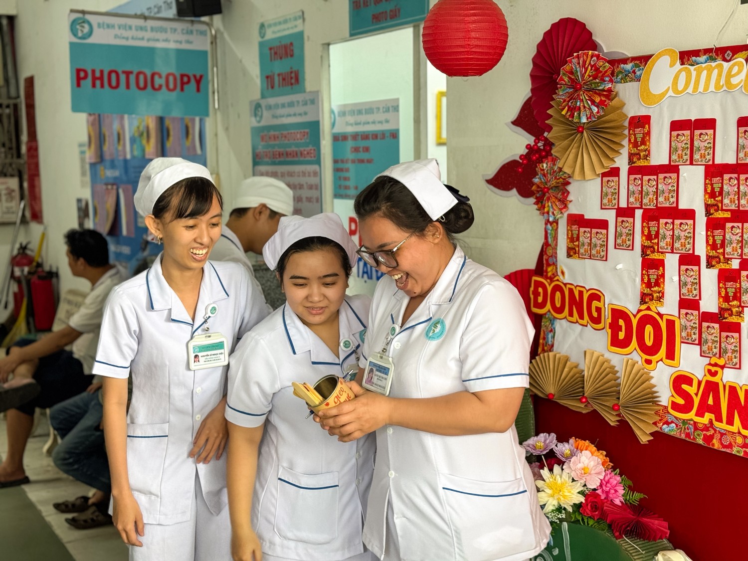 Lần đầu tiên tại Bệnh viện Ung bướu TP. Cần Thơ, một chương trình gắn kết nội bộ được tổ chức từ ngày 25/02/2026 đến ngày 06/03/2026 ngay trước phòng Công tác xã hội trong không khí rộn ràng và đầy phấn khởi của những ngày đầu năm mới. Không còn là những ca trực quen thuộc, không còn là những buổi họp giao ban mà là những khoảnh khắc dừng lại để nói lời cảm ơn, để gửi nhau lời chúc đầu năm, để nhận ra rằng bên cạnh mình luôn có những “đồng đội” tuyệt vời.