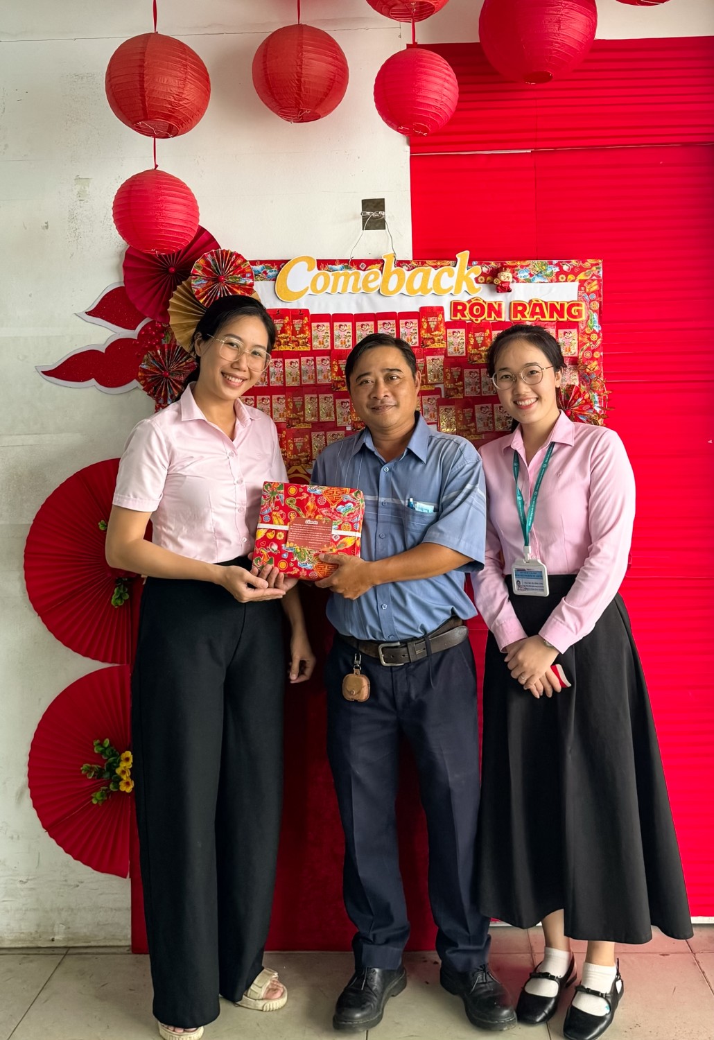 Điểm nhấn đặc biệt của chương trình là hoạt động trò chơi “sủi quẻ đầu năm” đầy bất ngờ và thú vị. Mỗi nhân viên tham gia sẽ được chọn cho mình một quẻ đầu xuân, trên đó ghi số thứ tự tương ứng. Từ con số này, người tham gia sẽ tìm đến bảng lì xì và nhận phong bao theo đúng số thứ tự của mình. Bên trong mỗi phong bao không chỉ là một phần quà may mắn, mà còn là những nhiệm vụ nhỏ vui nhộn, tạo nên những khoảnh khắc hào hứng, tiếng cười và sự tương tác đầy gắn kết. Đặc biệt, 100% người tham gia đều nhận được phần quà đầu năm như một lời chúc cho một năm mới nhiều niềm vui, may mắn và thuận lợi.