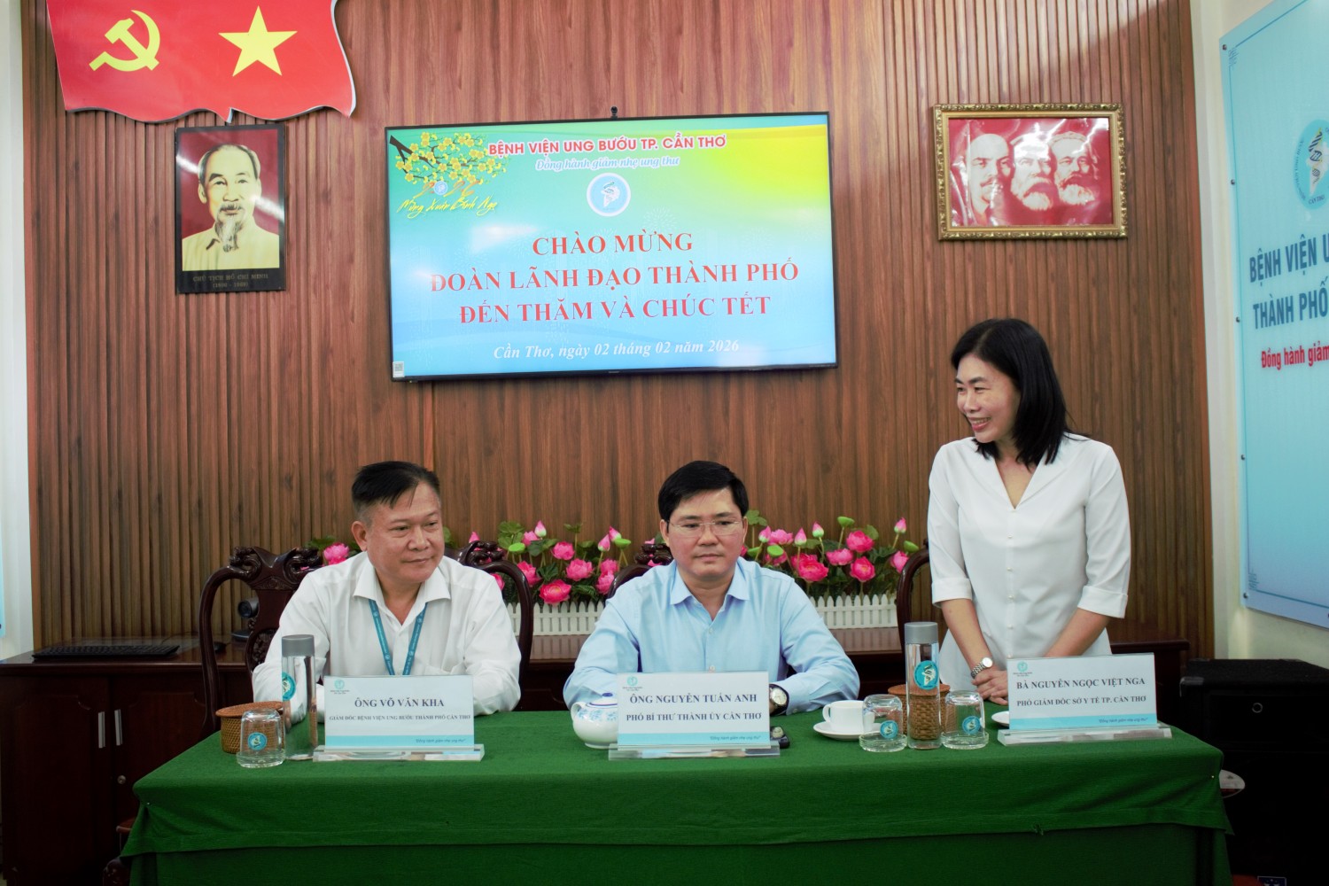 Nhân dịp Tết Nguyên đán, Chiều ngày 02/02/2026, tại Hội trường Huỳnh Quyết Thắng, Đoàn lãnh đạo Thành phố do Ông Nguyễn Tuấn Anh – Phó Bí thư thành ủy Cần Thơ dẫn đoàn, cùng Bà Nguyễn Ngọc Việt Nga - Phó Giám đốc Sở Y tế đã đến thăm, chúc Tết và động viên tập thể cán bộ, nhân viên Bệnh viện Ung bướu.