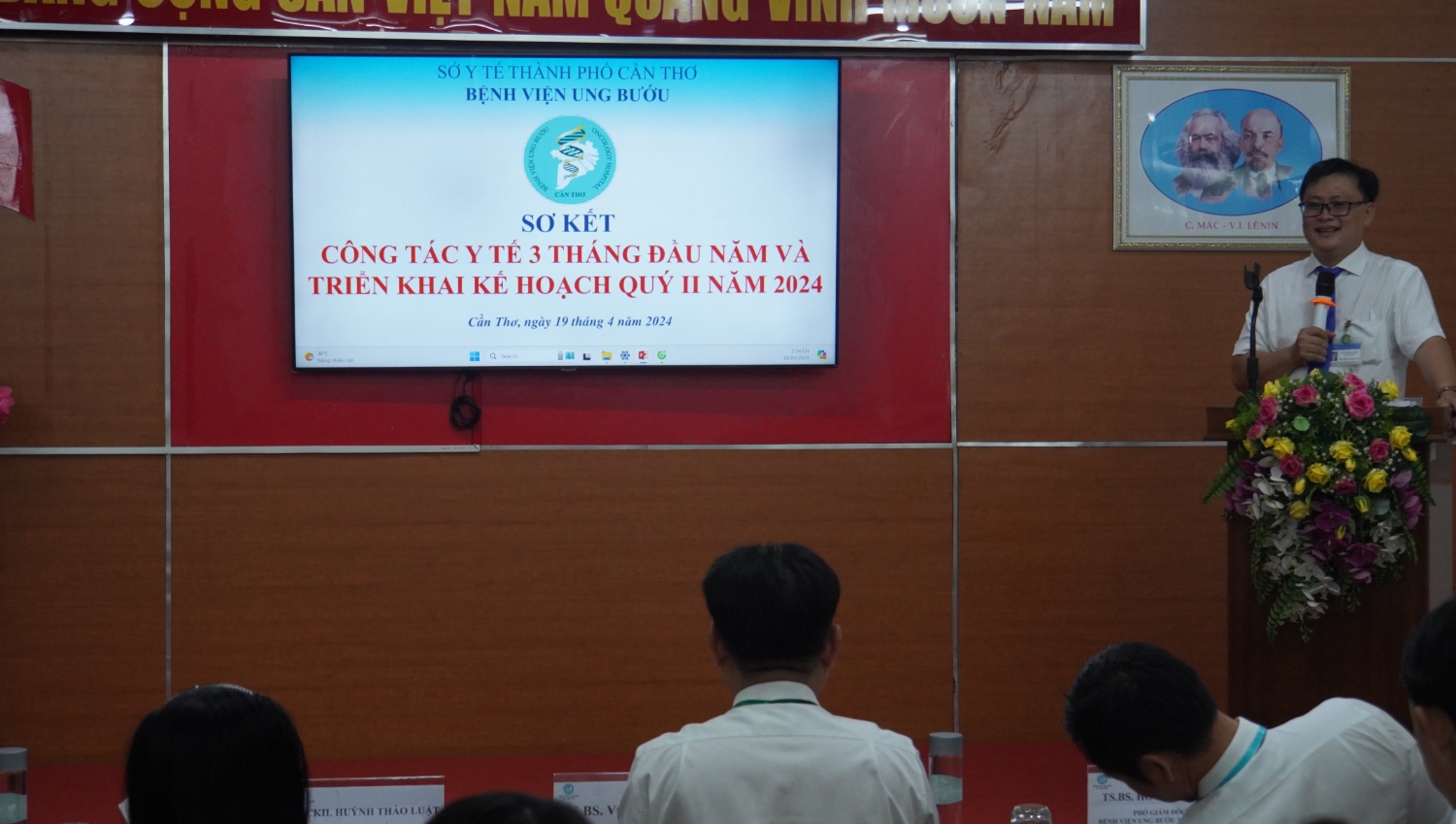 Chiều ngày 19/4/2024, Bệnh viện Ung bướu TP. Cần Thơ tổ chức hội nghị Sơ kết công tác y tế 3 tháng đầu năm và triển khai kế hoạch quý II năm 2024. TSBS. Võ Văn Kha – Giám đốc Bệnh viện chủ trì hội nghị.