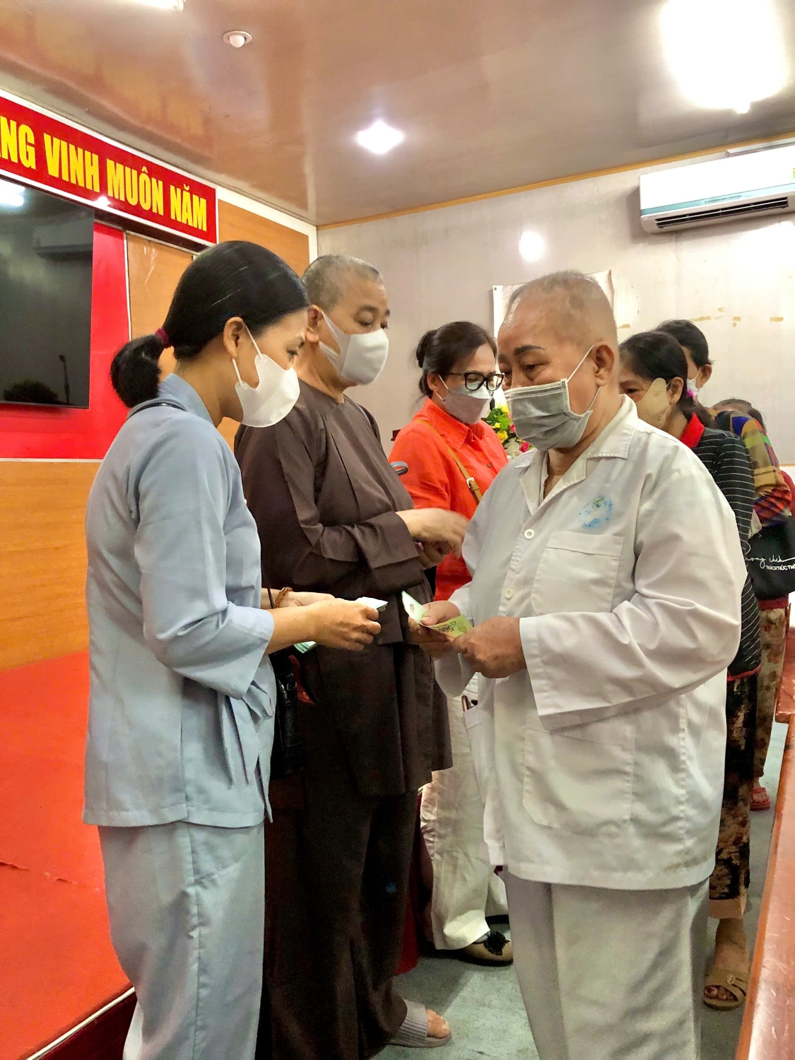 Trước một ngày đến Bệnh viện, Sư và phòng Công tác xã hội Bệnh viện đã trao đổi và thống nhất về số lượng, nhân viên phụ trách sẽ gửi trước các phiếu nhận quà đến tận tay bệnh nhân, mỗi phiếu màu hồng bệnh nhân sẽ nhận được 1.000.000đ, phiếu màu trắng được 500.000đ, các bệnh nhân có hoàn cảnh đặc biệt khó khăn sẽ nhận phiếu hồng. Tổng trị giá các phần hỗ trợ là hơn 300 triệu đồng. Bệnh viện Ung bướu thành phố Cần Thơ thay mặt cho các bệnh nhân gửi lời cảm ơn sâu sắc đến tịnh xá và các phật tử, gửi thư cảm ơn cùng bằng khen của Hội Bảo trợ bệnh nhân nghèo thành phố Cần Thơ.