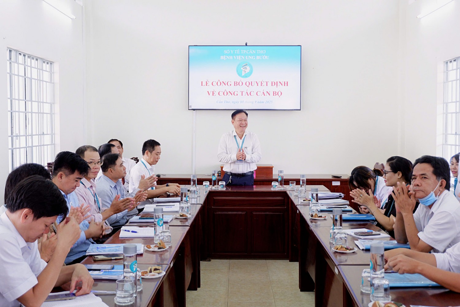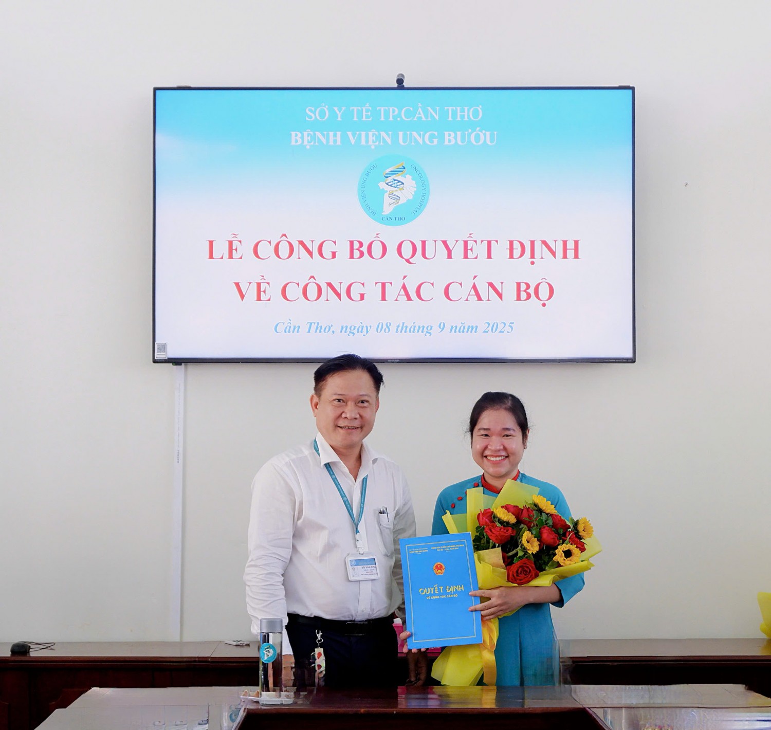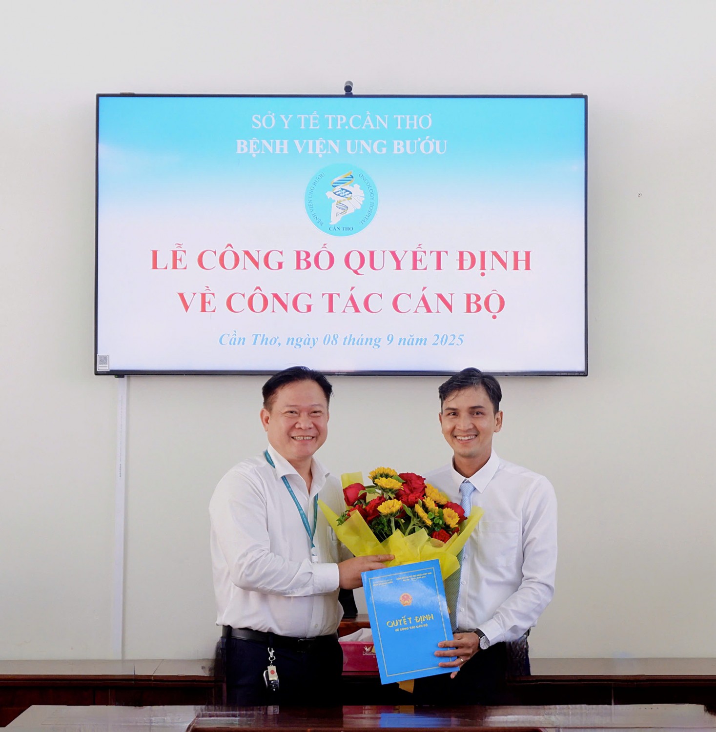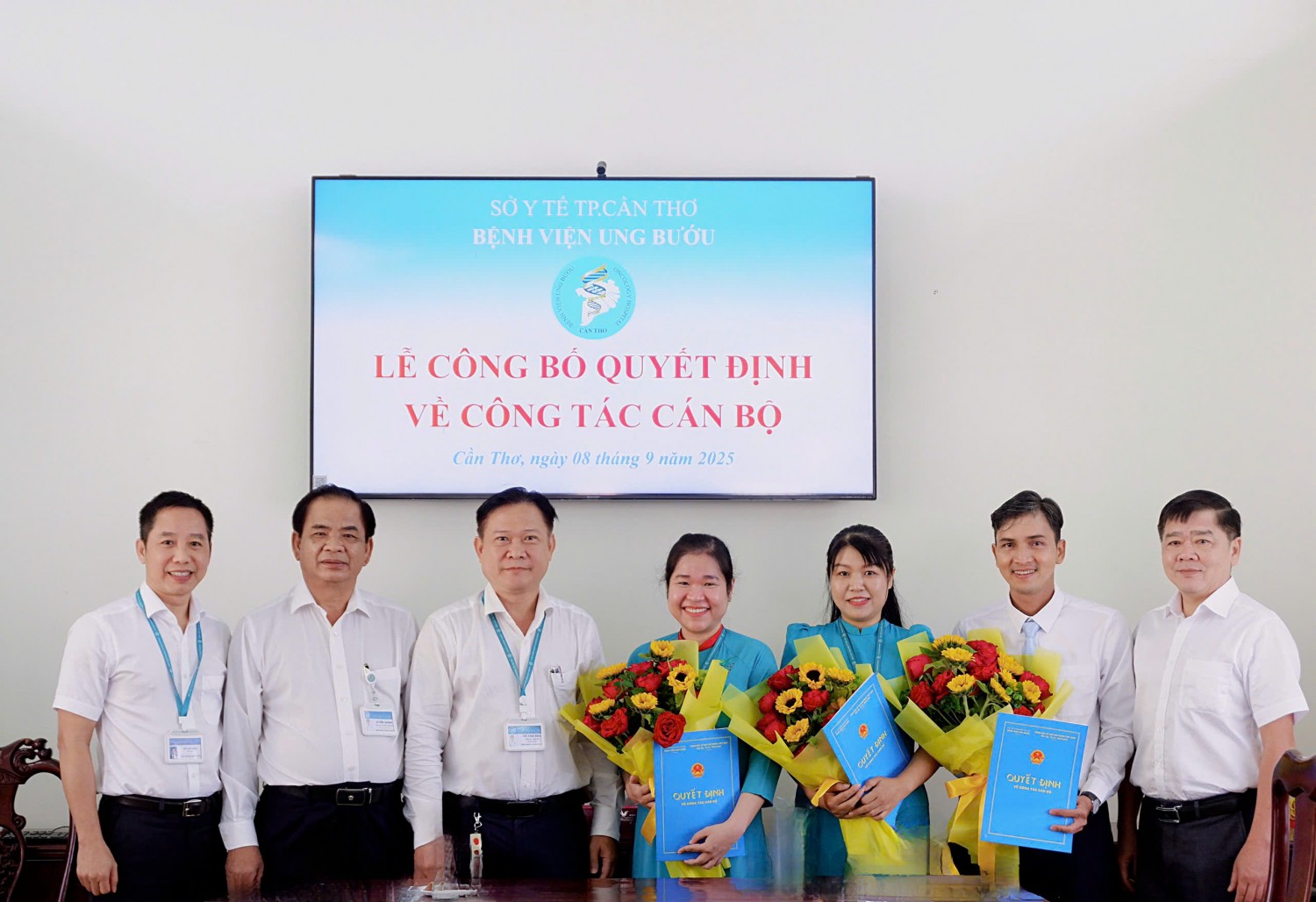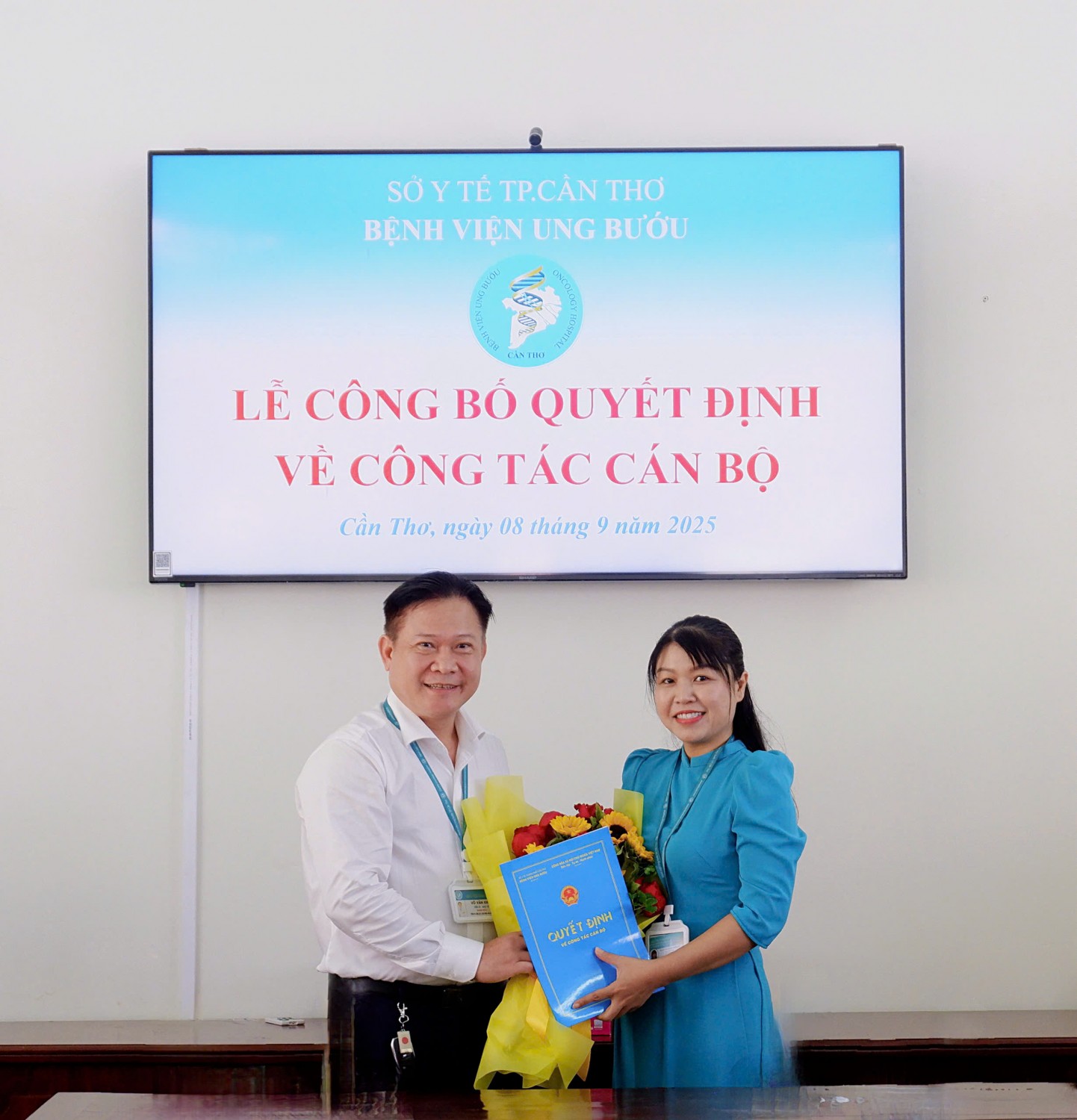 Sáng ngày 08 tháng 9 năm 2025, Bệnh viện Ung bướu thành phố Cần Thơ đã tổ chức Lễ công bố trao Quyết định bổ nhiệm lại 03 chức vụ Lãnh đạo khoa, phòng trong Bệnh viện. Tham gia buổi Lễ trao Quyết định bổ nhiệm có TSBS. Võ Văn Kha - Bí thư Đảng ủy - Giám đốc Bệnh viện, BSCKII. Huỳnh Thảo Luật - Phó Giám đốc - Chủ tịch Công đoàn Bệnh viện, BSCKII. Lê Tiến Mãnh - Phó Giám đốc Bệnh viện, TS.BS Hồ Long Hiển - Phó Giám đốc Bệnh viện cùng các trưởng, phó khoa, phòng trong Bệnh viện.