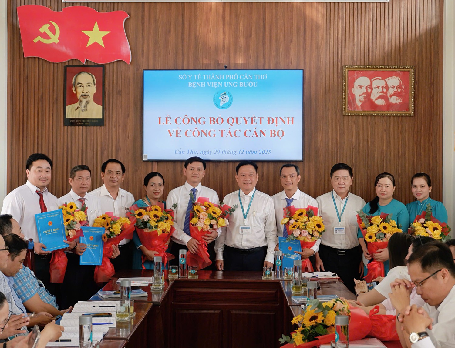 Chiều ngày 29 tháng 12 năm 2025, Bệnh viện Ung bướu thành phố Cần Thơ đã tổ chức Lễ công bố trao Quyết định về công tác cán bộ Bệnh viện trong Bệnh viện. Tham gia buổi Lễ trao Quyết định bổ nhiệm có TSBS. Võ Văn Kha - Bí thư Đảng ủy - Giám đốc Bệnh viện, BSCKII. Huỳnh Thảo Luật - Phó Giám đốc, BSCKII. Lê Tiến Mãnh - Phó Giám đốc Bệnh viện, TS.BS Hồ Long Hiển - Phó Giám đốc Bệnh viện cùng các trưởng, phó khoa, phòng trong Bệnh viện.